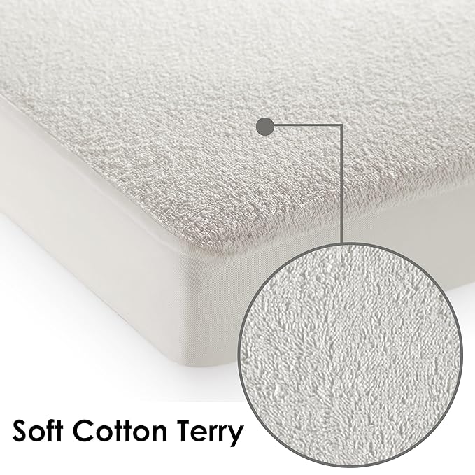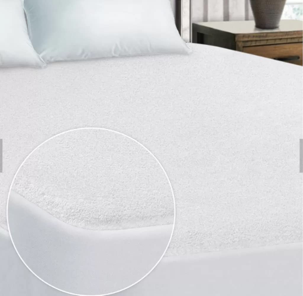 - Material: This quick-fit mattress protector is made up of soft Terry fabric that will enhance the beauty of your bedroom by providing a classy and elegant look. Waterproofing Layer: APPLE Mattress Protector comes with an eco-friendly TPU layer that makes it 100% waterproof. This layer is placed just below the Terry fabric layer to make it 100% water-resistant.