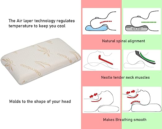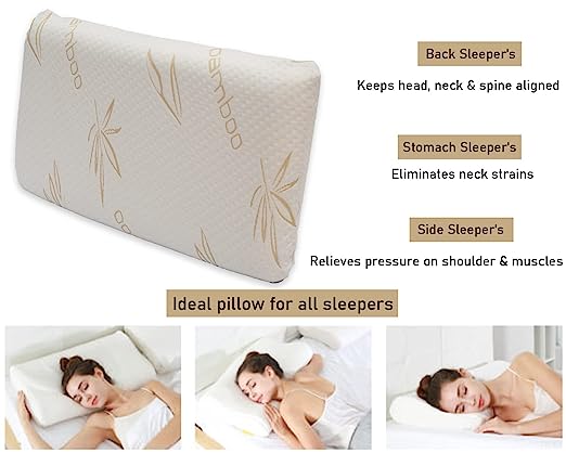• LUXURY SLEEPING PILLOW – Provides therapeutic relief for all sleepers and neck pain. It Comes with a premium Bamboo Outer Cover with a zip which is soft and easy on the skin: Get these pillows and match with them your Favorite bedsheets and pillow covers.